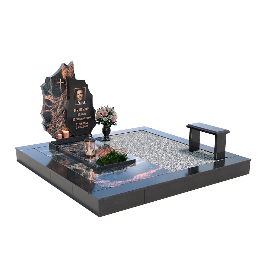 Дополнительный постамент 80-20-8 Мансуровский гранит+ Надгробная плита 100-30-8 Мансуровский гранит + 100-40-5 габбро-диабаз Карелия+ Ваза Мансуровский гранит+ ваза габбро-диабаз Карелия